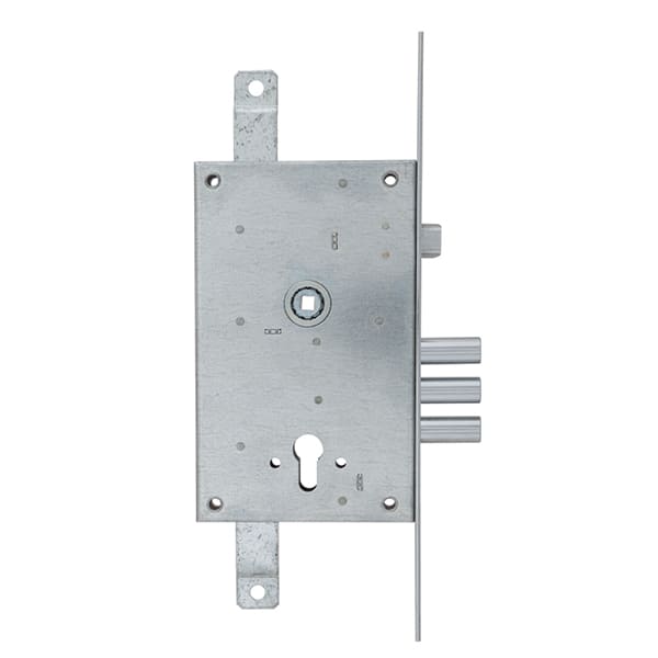 Израильский производитель MUL-T-LOCK известен на рынке качеством своей дверной фурнитуры. Данная модель - это 3-х ригельный врезной замок, который устанавливается на металлические входные двери. Благодаря реверсивному язычку подходит как для лево, так и правосторонних дверей. Управляется ручками и сердцевиной стандарта EURO DIN. Она в комплект не входит и докупается отдельно в зависимости от ваших потребностей. Особенностью этого замка является наличие проушин для крепления тяг, благодаря чему закрывание происходит в 3 стороны.