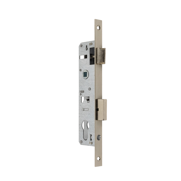 Главной особенностью данной модели является то, что он имеет узкую торцевую планку 16 мм. Как правило, такие замки устанавливаются исключительно на металлопластиковые двери. Его торцевая планка и корпус изготовлены из стали и оцинкованы. Это обеспечивает дополнительную защиту от коррозии. Благодаря реверсивному цинковому язычку замок подходит как для лево-, так и для правосторонних дверей. В конструкции имеется цинковый прямоугольный ригель. Его полный выход составляет 15 мм.