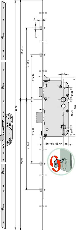 Механизм замка GU Secury R4 защелка 45*92 мм рейка 2285 мм