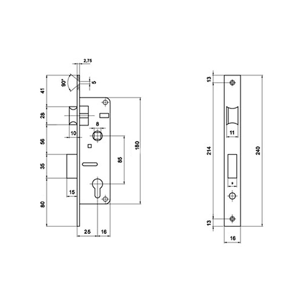 Механизм замка KALE 252 R (BS60*85мм) хром