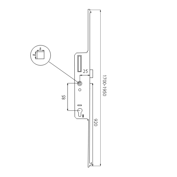 Описание Механизм замка VORNE защелка 25*85 мм рейка 1700-1950 мм с ригелем