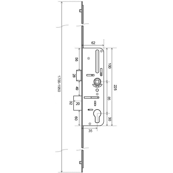 Описание Механизм замка VORNE защелка 35*85 мм рейка 1700-1950 мм с ригелем