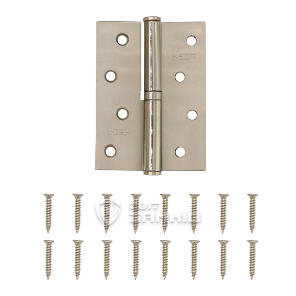 Петля торговой марки KEDR. Изготавливается из прочной стали с использованием подшипника, что обеспечит долговечную работу без проседания двери. При выборе обязательно нужно учитывать вес и габариты Вашего дверного полотна, чтобы определиться с количеством необходимых петель. Также важно обращать внимание на их сторонность. Эта модель предназначена только для ЛЕВЫХ дверей. Данный тип пользуется популярностью на рынке дверной фурнитуры, поскольку позволяет снять дверь без выкручивания петли. Например, если Вы хотите занести в комнату габаритные вещи, можно просто поднять дверь вверх и половина петли снимается с штифта. Покрытие наносится методом гальваники, что гарантирует устойчивость цветового оттенка к стиранию и царапинам. Современный цвет – сатин – уместно дополнит дверное полотно в спокойных серых оттенках. Процесс крепления петли осуществляется путем наложения на дверное полотно в отфрезерованный паз. В комплекте поставляются саморезы для крепления.
