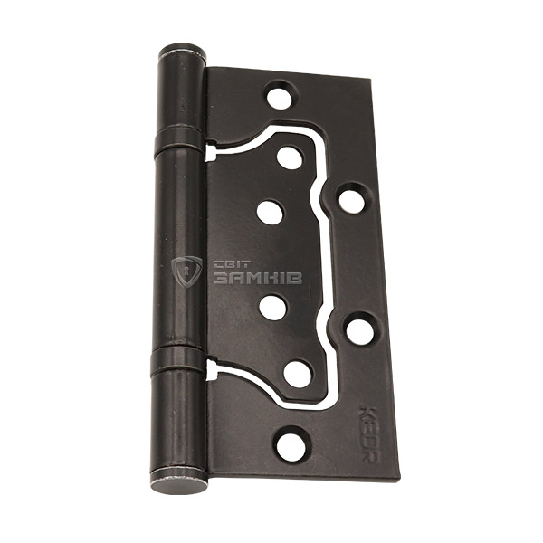 Петля торговой марки KEDR. Эта серия имеет форму бабочки, что делает их универсальными и позволяет устанавливать как на левые, так и на правые двери. Изготавливается из прочной стали с использованием двух подшипников. Благодаря этому дверь будет двигаться плавно и не будут провисать или расшатываться со временем. При выборе обязательно нужно учитывать вес и габариты дверного полотна, чтобы определиться с количеством необходимых петель. Гальваническое покрытие обеспечит устойчивость цветового оттенка к истиранию и царапинам. Черный матовый цвет хорошо подойдет для дверного полотна в темных оттенках. Монтаж петель осуществляется быстро и не требует фрезерования в дверное полотно. Рекомендуем использовать такие петли на легкие дверные конструкции.
