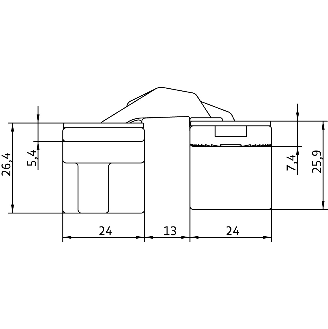 Петля такого вида подходит под дверь с русской четвертью (полотно имеет прямой торец).