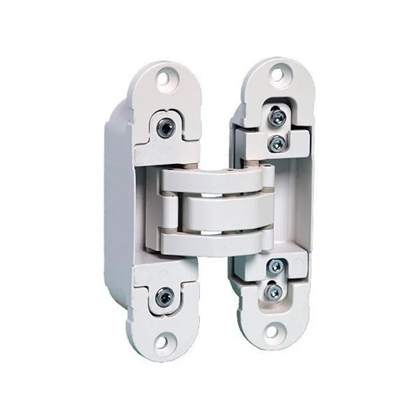 Петли ТМ OTLAV изготавливаются в Италии. Этот производитель давно известен на рынке и имеет более сотни патентов в сфере фурнитуры для дверей и окон. Соответственно его производство гарантирует стандарты качества. Данная модель - это петля скрытого монтажа. На практике это буквально означает, что она спрятана внутрь дверного полотна и не выступает за его плоскость. С точки зрения безопасности подобное исполнение является лучшим, ведь такую петлю нельзя выбить или спилить. OTLAV Invisacta IN300 изготавливается из цинкового сплава ZAMAK и предназначена для деревянных дверных полотен. Благодаря малой глубине врезки (21 мм) может ставиться и на алюминиевые двери. Семь опорных точек и нейлоновые вставки обеспечивают их плавное открывание на 180º (при отсутствии наличников). Это означает, что в полном открытом состоянии дверь не будет мешать, занимая жилое пространство. Данная модель регулируется в 3-х измерениях: вертикаль, горизонталь, прижим. Таким образом, можно добиться максимальной точности и отсутствия каких-либо щелей. Важным аспектом при подборе петель являются габариты дверей. Зная их, вы очень просто определитесь с их необходимым количеством из расчета того, что нагрузка должна быть не более 60 кг на 2 петли (80 кг - на три). OTLAV Invisacta IN300 выполнена в минималистическом стиле. Регулировочные винты скрываются специальными колпачками, поэтому их не видно даже при открытых дверях. Это все дает большой простор для интересных дизайнерских воплощений. В белом цвете эти петли будут удачным решением в дверях аналогичных оттенков для того, чтобы максимально избежать контрастов и не привлекать лишнего внимания.