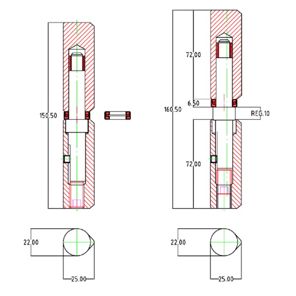 • Состоит из 2-х секций – верхней и нижней размером Ø 22x25 мм.