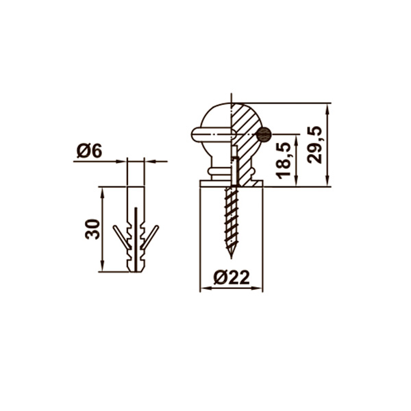 • Діаметр основи стопора - 22 мм.