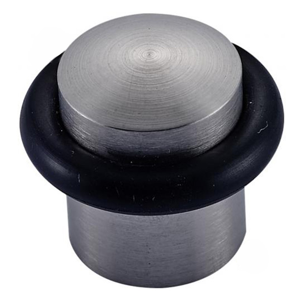 Стопор - це аксесуар, який призначений для захисту дверного полотна, стін і меблів від пошкоджень під час неконтрольованого відчинення дверей. По суті він обмежує кут відкривання, тим самим зберігаючи ручки від удару об стіну. Дана модель MVM M-25 виконана у вигляді "бочки". Має невеликі розміри, тому не привертатиме зайвої уваги. Монтується до підлоги. Стопор виготовлений із нержавіючої сталі, тому може примінятись як для міжкімнатних, так і вхідних дверей у вуличних умовах. Для амортизації та пом’якшення удару в місці контакту із дверним полотном має гумовий відбійник. В кольорі “нержавіючої сталі” найкраще буде доповнювати двері та підлогу світлих відтінків - від тепло-сірих до бежевих.
