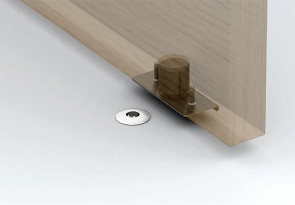 Це магнітний стопор прихованого монтажу FANTOM PREMIUM. На відміну від будь-якого традиційного обмежувача, він є повністю прихованим і майже непомітний. Це дає можливість знизити ймовірність отримати травму ноги та створює додаткові можливості для унікального дизайну і розумного житлового простору. Стопор складається з рідкоземельного неодимового магніту, втулки, штифта із нержавіючої сталі і пластини, яка фіксує магніт в дверному полотні. Основна частина монтується за допомогою врізки в підлогу на глибину 50 мм діаметром 14 мм, магніт і пластина - в дверне полотно. Шток без пружини. Для тихої роботи має пластиковий амортизатор. Не потребує додаткового обслуговування. В разі потреби чистки з часом дістається без зусиль. Стопор призначений для дерев’яних міжкімнатних дверей, які підняті над поверхнею підлоги на 8-12 мм. Якщо ця відстань більша, то існують спеціальні проставки, які купуються окремо.