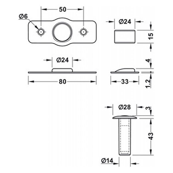 Це магнітний стопор прихованого монтажу FANTOM PREMIUM. На відміну від будь-якого традиційного обмежувача, він є повністю прихованим і майже непомітний. Це дає можливість знизити ймовірність отримати травму ноги та створює додаткові можливості для унікального дизайну і розумного житлового простору. Стопор складається з рідкоземельного неодимового магніту, втулки, штифта із нержавіючої сталі і пластини, яка фіксує магніт в дверному полотні. Основна частина монтується за допомогою врізки в підлогу на глибину 50 мм діаметром 14 мм, магніт і пластина - в дверне полотно. Шток без пружини. Для тихої роботи має пластиковий амортизатор. Не потребує додаткового обслуговування. В разі потреби чистки з часом дістається без зусиль. Стопор призначений для дерев’яних міжкімнатних дверей, які підняті над поверхнею підлоги на 8-12 мм. Якщо ця відстань більша, то існують спеціальні проставки, які купуються окремо.