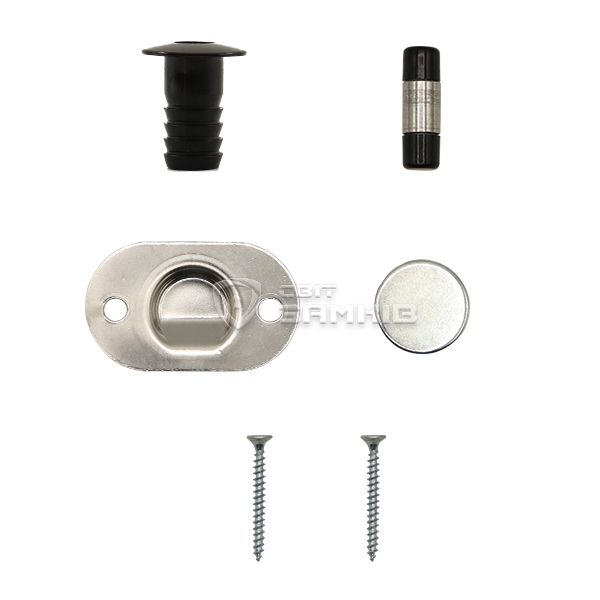 Стопор складається з неодимового магніту, штифта, “грибка” і пластини-уловлювача, яка фіксує магніт в дверному полотні. “Грибок” виготовлений із міцного пластику та монтується за допомогою врізки в підлогу на глибину 31 мм діаметром 16 мм. За потреби завдяки різьбі його можна фіксувати навіть без клею. Магніт і пластина встановлюються в дверне полотно.