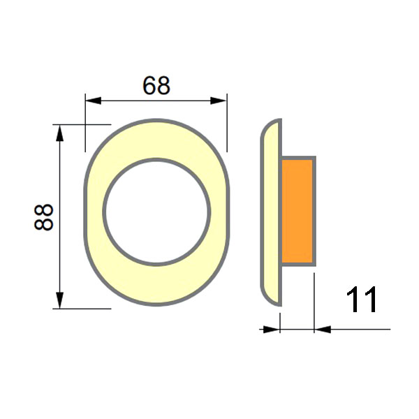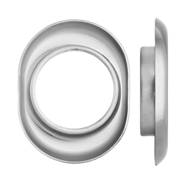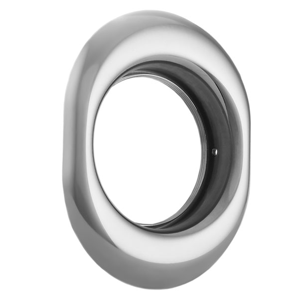 Виготовлена із латуні, має овальну форму розміром 88х68 мм. В кольорі “хром полірований” найкраще буде доповнювати відповідного кольору протектор.