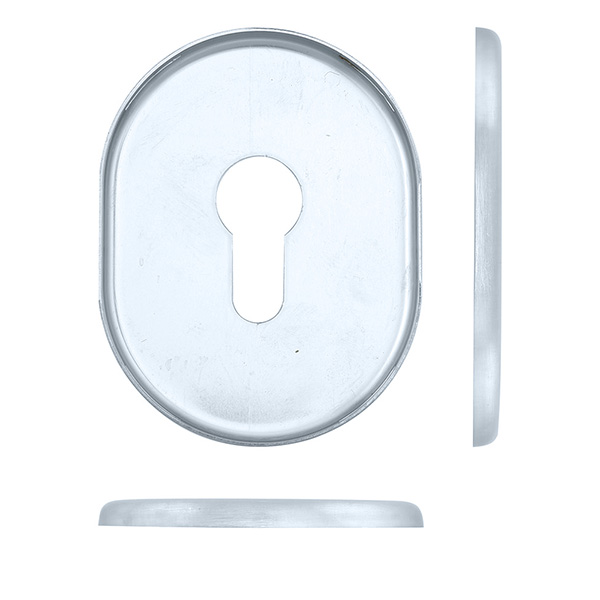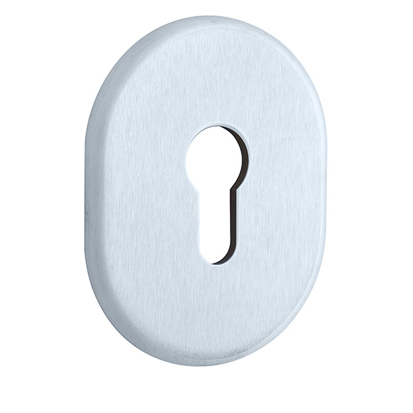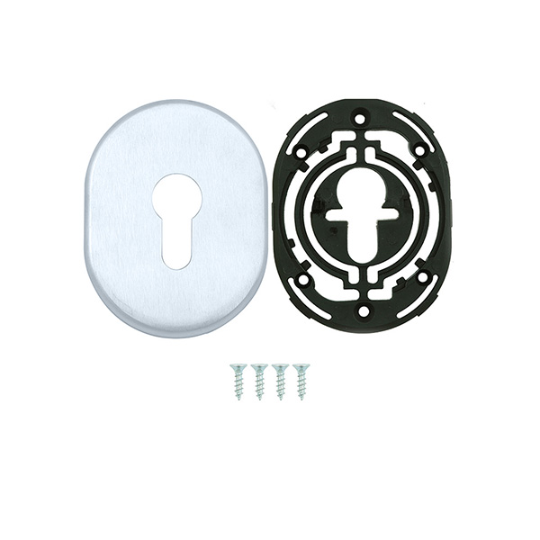 Декоративна накладка DISEC KT036 - це декоративний елемент, що призначений для надання дверним полотнам більш охайного вигляду. Використовується в парі із врізними броненакладками із замками і серцевинами стандарту EURO DIN. Кріпиться з внутрішньої сторони дверей за допомогою пластика та саморізів. Накладка дає можливість приховати монтажні отвори, подряпини та інші пошкодження, які можуть з’явитись при установці замка і серцевини. Виготовлена із латуні, має овальну форму розміром 85х65 мм. В кольорі “хром матовий” найкраще буде доповнювати відповідного кольору протектор та двері світлих відтінків - від тепло-сірих до бежевих. Монтаж відбувається доволі просто.