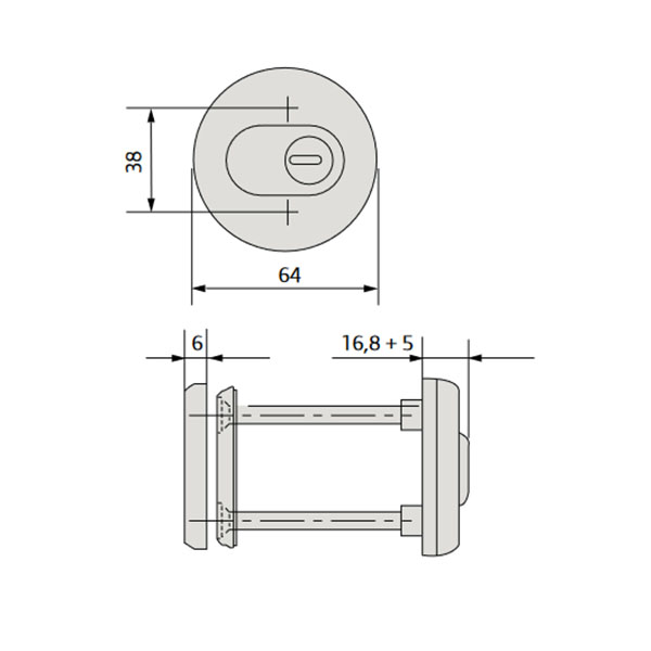 Протектор CISA 1.06460.51.0.18 встановлюється на вхідні двері разом із замками і серцевинами стандарту EURO DIN. Монтується накладним методом. Корпус із обертовою вставкою з вуглецевої сталі забезпечує захист від висвердлювання. Наскрізні стальні гвинти та форма броненакладки не дозволяє охопити її, що створює захист від виламування. Висота (або товщина) протектора складає 16,8 мм, діаметр – 64 мм. В хромованому кольорі найкраще буде доповнювати двері зі світлої палітри.