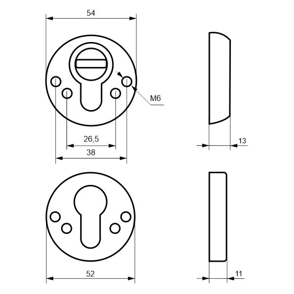 Протектор (або броненакладка) є обов'язковим аксесуаром вхідних дверей для захисту Вашої оселі. Оскільки їхньою найслабшою точкою є замок з серцевиною, то дуже часто злочинці намагаються потрапити всередину приміщення просто вириваючи їх. Для протидії такому методу взлому і потрібна броненакладка. Дана модель DISEC BD54 DIN ROUND встановлюється на вхідні двері разом із замками і серцевинами стандарту EURO DIN. Це захисний протектор з 3-м класом зламостійкості. Виготовлений із гартованої сталі. Монтується накладним методом та може бути втопленим в накладку МДФ спеціальним кільцем (докуповується окремо). Протектор захищає від фізичних та силових методів злому — свердління, виламування та вибивання. Висота (або товщина) протектора складає 13 мм, діаметр - 54 мм. В бронзовому кольорі найкраще буде доповнювати двері з пильно-землистої палітри.