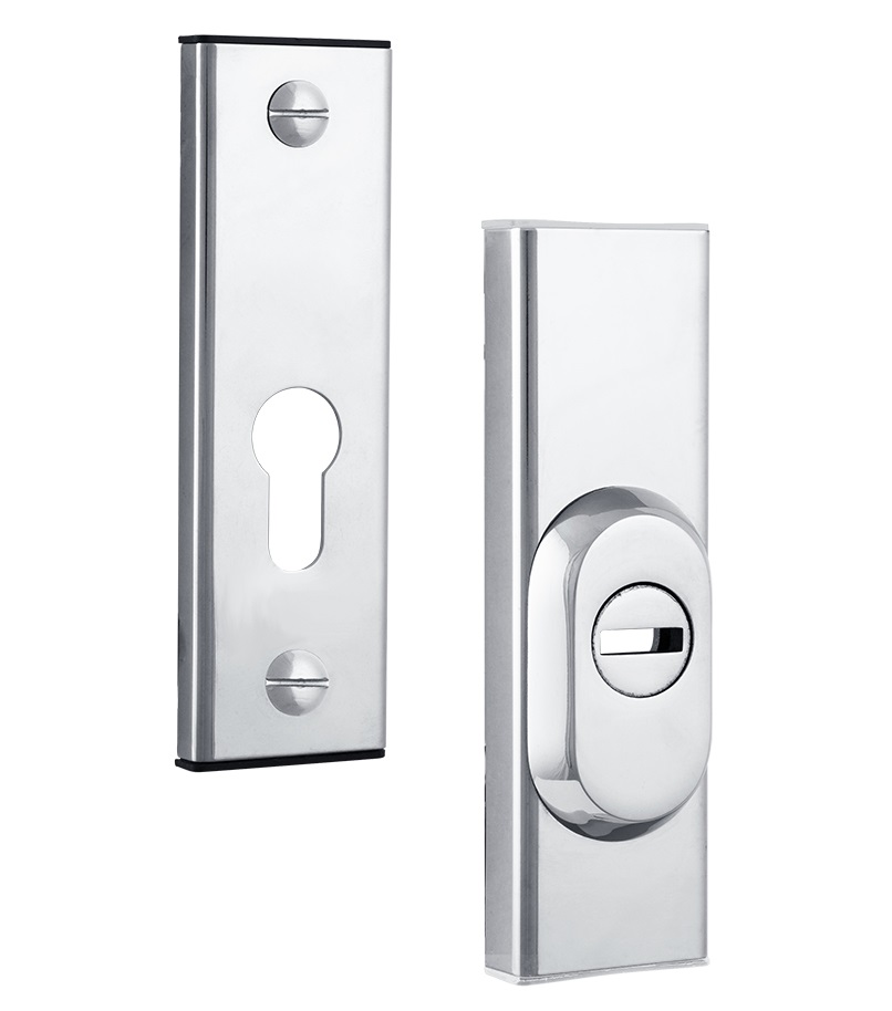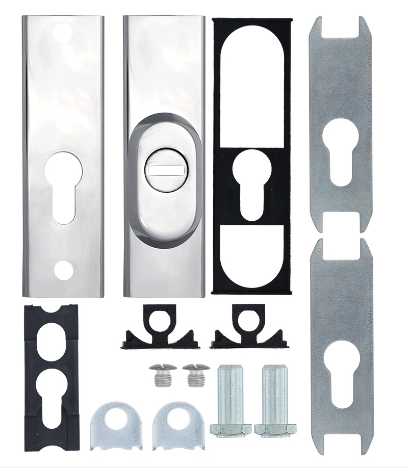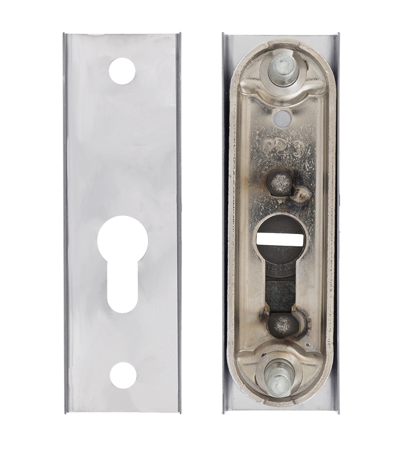 Захисна дверна фурнітура чеського виробника ROSTEX вже давно завоювала прихильність у власників квартир, будинків та комерційних приміщень. Обов'язковим аксесуаром вхідних дверей для захисту Вашої оселі є протектор (або броненакладка). Оскільки їхньою найслабшою точкою є замок з серцевиною, то дуже часто злочинці намагаються потрапити всередину приміщення просто вириваючи їх. Для протидії такому методу взлому і потрібна броненакладка. Дана модель ROSTEX R3 встановлюється на вхідні металеві та дерев'яні двері разом із ДОДАТКОВИМ замком і серцевиною стандарту EURO DIN. Це захисний протектор з 3-м класом зламостійкості. Виготовлений із нержавіючої сталі, тому може використовуватись у вуличних умовах. Монтується накладним методом. Проте кріплення не стандартне горизонтальне, а вертикальне. Це потребує меншого за розміром додаткового замка для того, щоб закрутити через нього стяжні гвинти М8. Їхня довжина дозволяє ставити броненакладку на дверні полотна товщиною від 38 до 55 мм. Є додаткова можливість подовження до 100 мм. Ці цифри вказані з урахуванням того, що гвинти закручені на всю довжину кріпильного отвору. Таким чином, протектор захищає серцевину від фізичних та силових методів злому — свердління та вибивання. Особливістю цієї моделі є наявність всередині посиленої сталевої пластини, яка створює додатковий захист корпусу замка. При цьому вузький корпус дозволяє монтувати дану броненакладку на додаткові замки з бексетом від 30 мм. Висота (або товщина) протектора складає 22 мм. В полірованому хромованому кольорі найкраще буде доповнювати двері світлих відтінків - від тепло-сірих до бежевих.