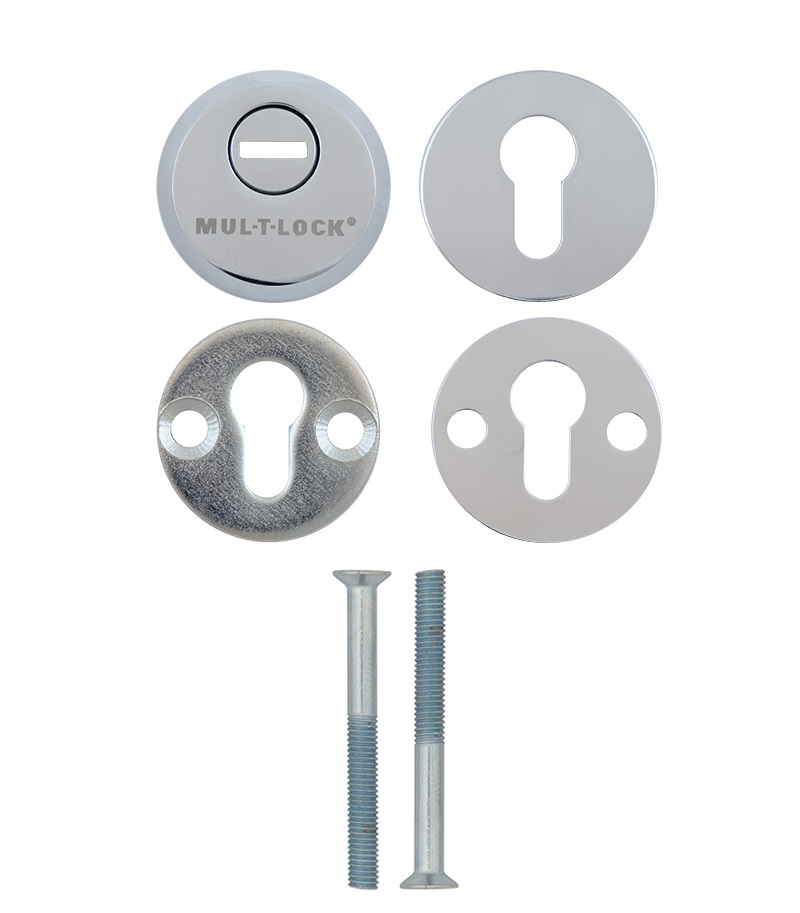 Протектор (або броненакладка) є обов'язковим аксесуаром вхідних дверей для захисту Вашої оселі. Оскільки їхньою найслабшою точкою є замок з серцевиною, то дуже часто злочинці намагаються потрапити всередину приміщення просто вириваючи їх. Для протидії такому методу взлому і потрібна броненакладка. Дана модель MUL-T-LOCK SL3 встановлюється на вхідні двері разом із замками і серцевинами стандарту EURO DIN. Це захисний протектор з 3-м класом зламостійкості. Виготовлений із гартованої сталі. Монтується накладним методом. Він простіший за врізний та не потребує висвердлювання отворів для посадки броненакладки. Проте в такому випадку вона не утворює із замком монолітну конструкцію, через що легше дістатись до стяжних гвинтів і зрізати їх. Чашка дозволяє трохи втопити протектор, але всерівно простір між ним і серцевиною залишається. Саме кріплення здійснюється стяжними гвинтами М8х65. Довжина гвинтів дозволяє ставити броненакладку на дверні полотна товщиною від 48 до 53 мм. Ці цифри вказані з урахуванням того, що гвинти закручені на всю довжину кріпильного отвору. Таким чином, протектор захищає серцевину від фізичних та силових методів злому — свердління та вибивання. Висота (або товщина) протектора складає 14,5 мм, діаметр - 55 мм. В кольорі “латунь полірована” найкраще буде доповнювати двері світлих відтінків з бархатистим і соковитим покриттям - тим же шпоном вишні або груші.