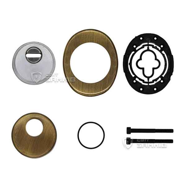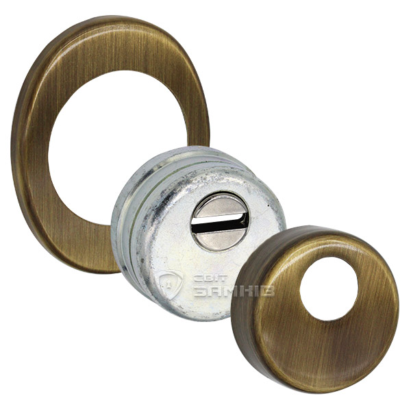 Для монтажу по його діаметру робиться отвір в дверному полотні. Кріпиться довкола серцевини стяжними гвинтами, створюючи монолітну конструкцію з нею. Таким чином, протектор захищає її разом із точкою кріплення в дверях від фізичних та силових методів злому — свердління, виламування та вибивання. Доступу до гвинтів кріплення немає і зірвати саму броненакладку надзвичайно складно. Висота (або товщина) її складає 25/33/42 мм, діаметр - 50 мм. Комплектується декоративною накладкою розміром 85х70 мм для надання дверному полотну більш охайного вигляду. В бронзовому кольорі найкраще буде доповнювати двері з пильно-землистої палітри.