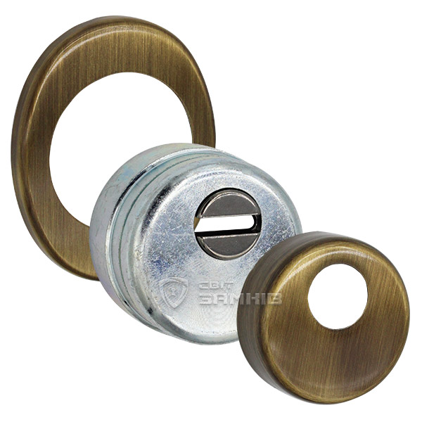 Для монтажу по його діаметру робиться отвір в дверному полотні. Кріпиться довкола серцевини стяжними гвинтами, створюючи монолітну конструкцію з нею. Таким чином, протектор захищає її разом із точкою кріплення в дверях від фізичних та силових методів злому — свердління, виламування та вибивання. Доступу до гвинтів кріплення немає і зірвати саму броненакладку надзвичайно складно. Висота (або товщина) її складає 25/33/42 мм, діаметр - 50 мм. Комплектується декоративною накладкою розміром 85х70 мм для надання дверному полотну більш охайного вигляду. В бронзовому кольорі найкраще буде доповнювати двері з пильно-землистої палітри.