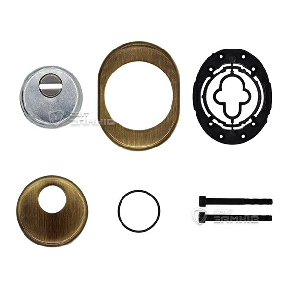 Для монтажу по його діаметру робиться отвір в дверному полотні. Кріпиться довкола серцевини стяжними гвинтами, створюючи монолітну конструкцію з нею. Таким чином, протектор захищає її разом із точкою кріплення в дверях від фізичних та силових методів злому — свердління, виламування та вибивання. Доступу до гвинтів кріплення немає і зірвати саму броненакладку надзвичайно складно. Висота (або товщина) її складає 25/33/42 мм, діаметр - 50 мм. В бронзовому кольорі найкраще буде доповнювати двері з пильно-землистої палітри.
