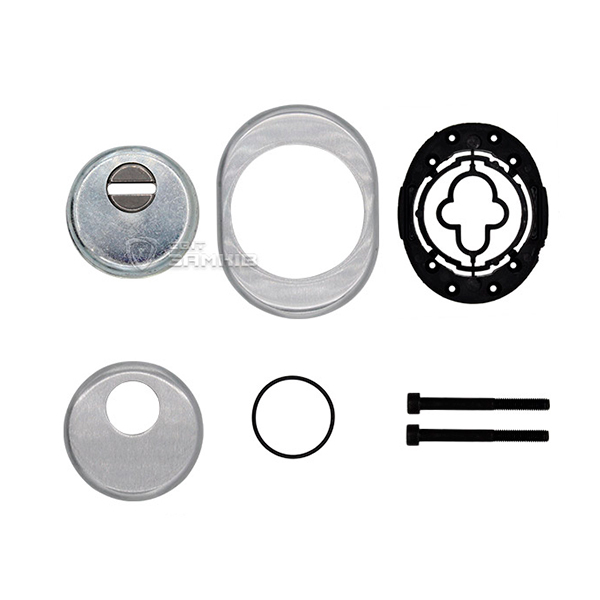 Для монтажу по його діаметру робиться отвір в дверному полотні. Кріпиться довкола серцевини стяжними гвинтами, створюючи монолітну конструкцію з нею. Таким чином, протектор захищає її разом із точкою кріплення в дверях від фізичних та силових методів злому — свердління, виламування та вибивання. Доступу до гвинтів кріплення немає і зірвати саму броненакладку надзвичайно складно. Висота (або товщина) її складає 25/33/42 мм, діаметр - 50 мм. В кольорі “матовий хром” найкраще буде доповнювати двері світлих відтінків - від тепло-сірих до бежевих.