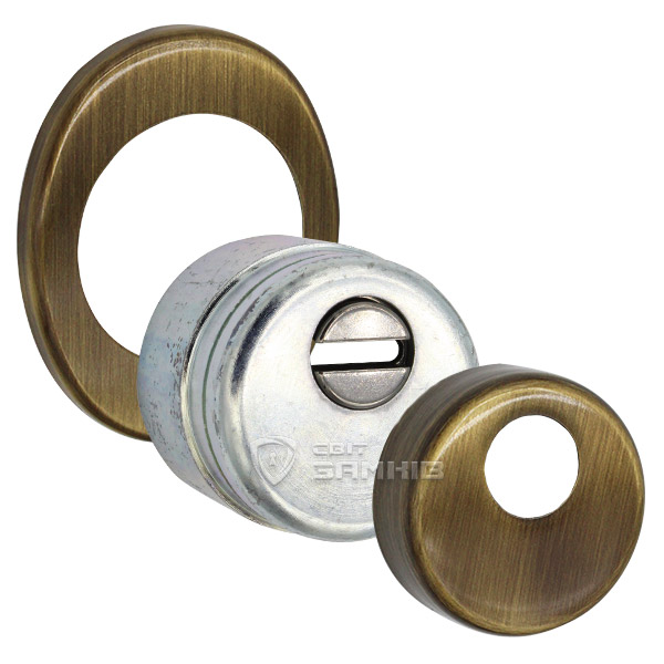 Для монтажу по його діаметру робиться отвір в дверному полотні. Кріпиться довкола серцевини стяжними гвинтами, створюючи монолітну конструкцію з нею. Таким чином, протектор захищає її разом із точкою кріплення в дверях від фізичних та силових методів злому — свердління, виламування та вибивання. Доступу до гвинтів кріплення немає і зірвати саму броненакладку надзвичайно складно. Висота (або товщина) її складає 25/33/42 мм, діаметр - 50 мм. Комплектується декоративною накладкою розміром 85х70 мм для надання дверному полотну більш охайного вигляду. В бронзовому кольорі найкраще буде доповнювати двері з пильно-землистої палітри.