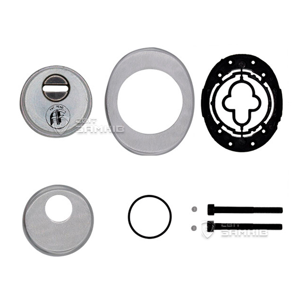 Для монтажу по діаметру протектора робиться отвір в дверному полотні. Кріпиться довкола серцевини стяжними гвинтами, створюючи монолітну конструкцію з нею. Таким чином, протектор захищає її разом із точкою кріплення в дверях від фізичних та силових методів злому — свердління, виламування та вибивання. Доступу до гвинтів кріплення немає і зірвати саму броненакладку надзвичайно складно. Висота (або товщина) її складає 25 мм, діаметр - 50 мм. Комплектується декоративною накладкою розміром 85х70 мм для надання дверному полотну більш охайного вигляду. В кольорі “матовий хром” найкраще буде доповнювати двері світлих відтінків - від тепло-сірих до бежевих.