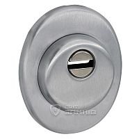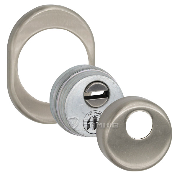 Для монтажу по діаметру протектора робиться отвір в дверному полотні. Кріпиться довкола серцевини стяжними гвинтами, створюючи монолітну конструкцію з нею. Таким чином, протектор захищає її разом із точкою кріплення в дверях від фізичних та силових методів злому — свердління, виламування та вибивання. Доступу до гвинтів кріплення немає і зірвати саму броненакладку надзвичайно складно. Висота (або товщина) її складає 25 мм, діаметр - 50 мм. В кольорі “нікель сатин” найкраще буде доповнювати двері світлих відтінків - від тепло-сірих до бежевих.