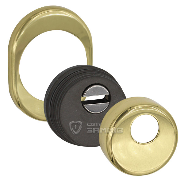 Для монтажу по діаметру протектора робиться отвір в дверному полотні. Кріпиться довкола серцевини стяжними гвинтами, створюючи монолітну конструкцію з нею. Таким чином, протектор захищає її разом із точкою кріплення в дверях від фізичних та силових методів злому — свердління, виламування та вибивання. Доступу до гвинтів кріплення немає і зірвати саму броненакладку надзвичайно складно. Висота (або товщина) її складає 25 мм, діаметр - 50 мм. Комплектується декоративною накладкою розміром 85х70 мм для надання дверному полотну більш охайного вигляду. В кольорі “полірована латунь” найкраще буде доповнювати двері світлих відтінків.
