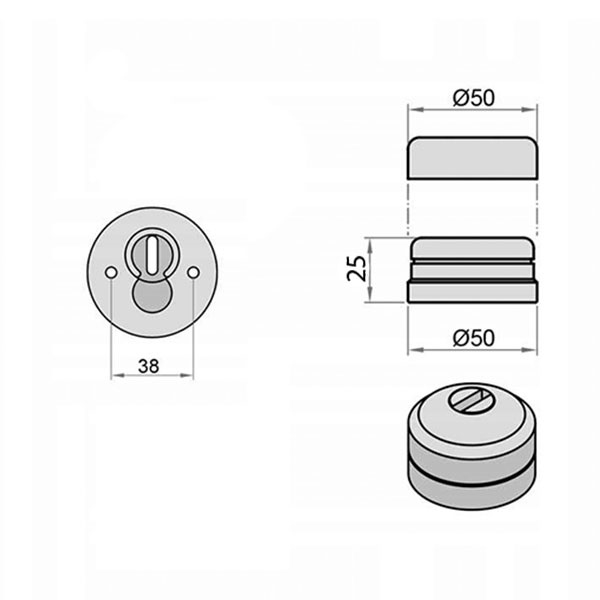 Висота (або товщина) протектора складає 25 мм, діаметр – 50 мм. Особливістю цієї моделі є широкий ключовий отвір. Завдяки цьому протектор є більш універсальним і може застосовуватись з більшою кількістю серцевин. Для його захисту від висвердлювання в конструкції передбачена обертова пластина з нержавіючої сталі.