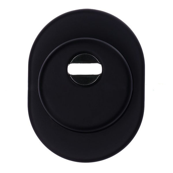 Комплектується зовнішньою декоративною накладкою овальної форми для надання дверному полотну більш охайного вигляду. В чорному кольорі найкраще буде доповнювати двері відповідних темних відтінків.