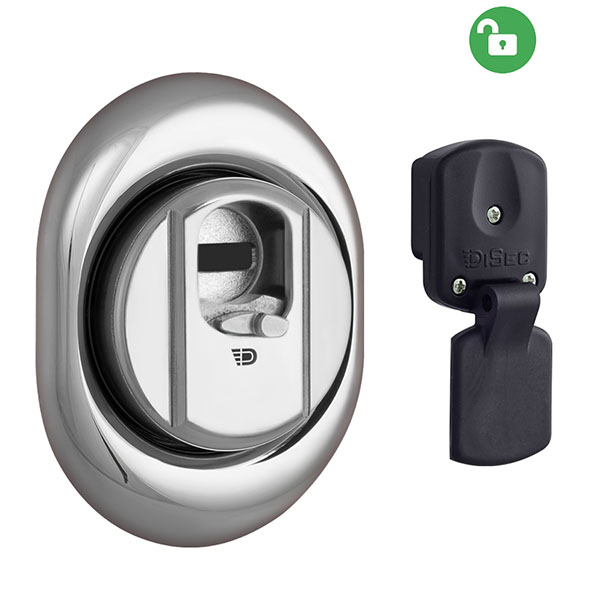 Дана модель DISEC 4GN2MB встановлюється на вхідні двері разом із замками (основними та додатковими) із серцевинами стандарту EURO DIN. Її особливістю є наявність магнітного ключа. Це додатковий захист ключового отвору від можливості підбору відмичок, вандалізму та потрапляння сторонніх предметів. Він відкриває доступ до циліндра: після того як Ви вставили його, потрібно провести вниз разом із захисною шторкою. Протектор містить 4 магніти, що посилює його секретність та надійніше захищає від зламу. DISEC 4GN2MB виготовлений із нержавіючої сталі. Це дозволяє використовувати його при вуличних умовах.