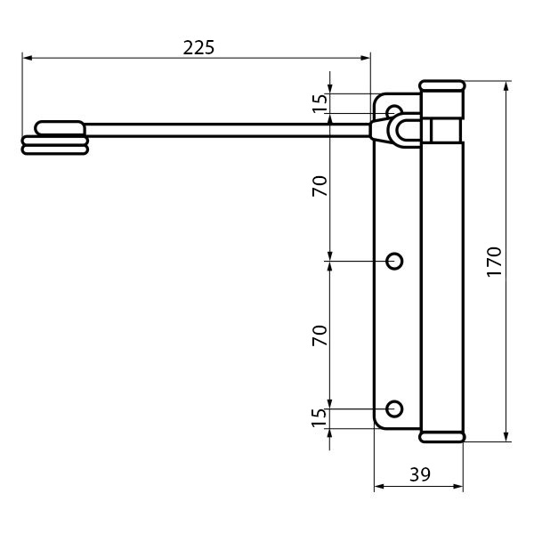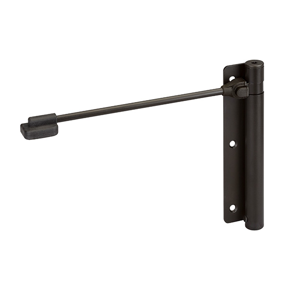 Італійський виробник ALDEGHI LUIGI славиться своєю якісною та надійною дверною фурнітурою. Дана модель дотягувача встановлюється переважно на двері та хвіртки з максимальною вагою до 60 кг, шириною до 950 мм та висотою до 2100 мм. Монтується накладним методом на рамі зі сторони завісів. Швидкість зачинення регулюється посиленням або ослабленням натягу пружини звичайним шестигранним ключем, який йде у комплекті. Працює тихо завдяки спеціальному прихованому під корпусом гумовому колесу. В чорному цинковому кольорі найкраще буде доповнювати двері або хвіртку аналогічних темних відтінків для того, щоб максимально уникнути контрастів та не привертати зайвої уваги.