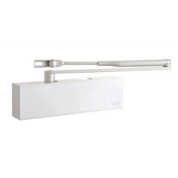 Німецька ТМ DORMA є одним із провідних виробників систем для автоматичних дверей та фурнітури для них. Дана модель дотягувача DORMA TS72 EN2-4 встановлюється накладним монтажем на внутрішні та зовнішні дверні полотна з максимальною вагою до 80 кг та шириною від 750 до 1100 мм. Безпосередньо на корпусі є можливість регулювати основну швидкість в діапазоні 180°-15° та швидкість захлопування - 15°-0°. Загалом завдяки таким можливостям регулювання можна добитись максимально індивідуального налаштування зачинення дверей. Гідравлічне масло в даній моделі високої якості. Завдяки цьому проблем при роботі дотягувача при перепаді температур не буде. Взагалі його робоча температура варіюється в діапазоні від -15°С до +40°С. В даній комплектації присутня стандартна тяга без фіксації дверного полотна у відкритому положенні. Проте даний дотягувач сертифікований для використання з протипожежними дверима. В білому кольорі найкраще буде доповнювати двері аналогічних світлих відтінків для того, щоб максимально уникнути контрастів та не привертати зайвої уваги.