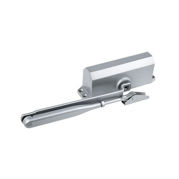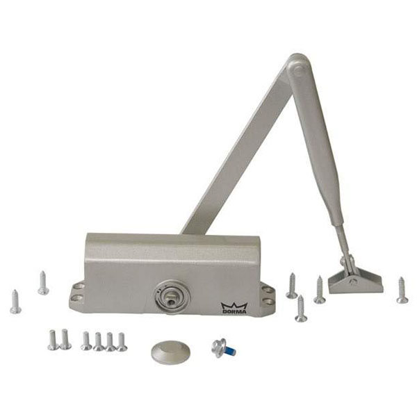 Німецька ТМ DORMA є одним із провідних виробників систем для автоматичних дверей та фурнітури для них. Дана модель дотягувача DORMA TS77 EN3 встановлюється накладним монтажем на легкі внутрішні та зовнішні дверні полотна з максимальною вагою до 60 кг та шириною до 950 мм. Безпосередньо на корпусі є можливість регулювати основну швидкість в діапазоні 180°-20° та швидкість захлопування - 20°-0°. Загалом завдяки таким можливостям регулювання можна добитись максимально індивідуального налаштування зачинення дверей. Гідравлічне масло в даній моделі високої якості. Завдяки цьому проблем при роботі дотягувача при перепаді температур не буде. Взагалі його робоча температура варіюється в діапазоні від -25 до +40°С. В даній комплектації присутня стандартна тяга без фіксації дверного полотна у відкритому положенні. В сірому кольорі найкраще буде доповнювати двері аналогічних відтінків для того, щоб максимально уникнути контрастів та не привертати зайвої уваги.