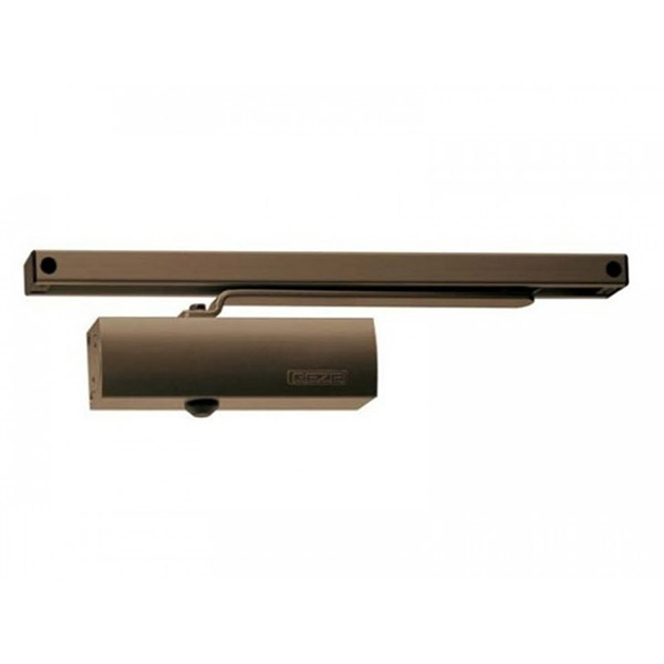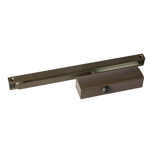 Серед продукції німецького виробника GEZE особливо виділяється дверна фурнітура для автоматичного закривання дверей, а саме - дотягувачі. Дана модель GEZE TS 1500 SLD HO встановлюється накладним монтажем на легкі внутрішні дверні полотна з максимальною вагою до 40 кг та шириною до 750 мм. Безпосередньо на корпусі є можливість регулювати основну швидкість та швидкість захлопування. Загалом завдяки таким можливостям регулювання можна добитись максимально індивідуального налаштування зачинення дверей. Гідравлічне масло в даній моделі високої якості. Завдяки цьому проблем при роботі дотягувача при перепаді температур не буде. Взагалі його робоча температура варіюється в діапазоні від -15°С до +30°С. В даній комплектації присутня ковзна тяга з фіксацією дверного полотна у відкритому положенні в межах 80°-130°. Це додає додаткової зручності в тих місцях, де не потрібно відчиняти їх повністю. В коричневому кольорі найкраще буде доповнювати двері аналогічних темних відтінків для того, щоб максимально уникнути контрастів та не привертати зайвої уваги.