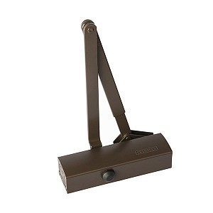 Серед продукції німецького виробника GEZE особливо виділяється дверна фурнітура для автоматичного закривання дверей, а саме - дотягувачі. Дана модель GEZE TS 2000 VBC STD встановлюється накладним монтажем на внутрішні та зовнішні дверні полотна з максимальною вагою до 100 кг та шириною до 1250 мм. Безпосередньо на корпусі є можливість регулювати основну швидкість та швидкість захлопування. Загалом завдяки таким можливостям регулювання можна добитись максимально індивідуального налаштування зачинення дверей. Гідравлічне масло в даній моделі високої якості. Завдяки цьому проблем при роботі дотягувача при перепаді температур не буде. Взагалі його робоча температура варіюється в діапазоні від -15°С до +40°С. В даній комплектації присутня стандартна тяга без фіксації дверного полотна у відкритому положенні. Проте даний дотягувач сертифікований для використання з протипожежними дверима. В коричневому кольорі найкраще буде доповнювати двері аналогічних темних відтінків для того, щоб максимально уникнути контрастів та не привертати зайвої уваги.