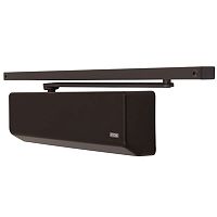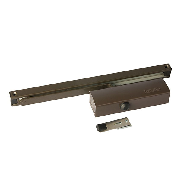 Серед продукції німецького виробника GEZE особливо виділяється дверна фурнітура для автоматичного закривання дверей, а саме - дотягувачі. Дана модель GEZE TS 3000 VBC SLD HO встановлюється накладним монтажем на внутрішні та зовнішні дверні полотна з максимальною вагою до 80 кг та шириною до 1100 мм. Безпосередньо на корпусі є можливість регулювати основну швидкість, швидкість захлопування та гальмо відчинення. Дана функція захищає дверне полотно від удару об стіну та виривання тяги дотягувача. Загалом завдяки таким можливостям регулювання можна добитись максимально індивідуального налаштування зачинення дверей. Гідравлічне масло в даній моделі високої якості. Завдяки цьому проблем при роботі дотягувача при перепаді температур не буде. Взагалі його робоча температура варіюється в діапазоні від -15°С до +40°С. В даній комплектації присутня ковзна тяга з фіксацією дверного полотна у відкритому положенні. Це додає додаткової зручності в тих місцях, де не потрібно відчиняти їх повністю. В коричневому кольорі найкраще буде доповнювати двері аналогічних темних відтінків для того, щоб максимально уникнути контрастів та не привертати зайвої уваги.