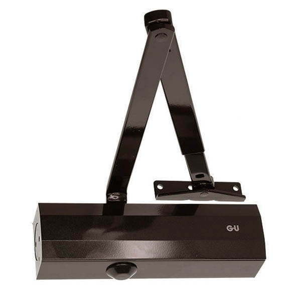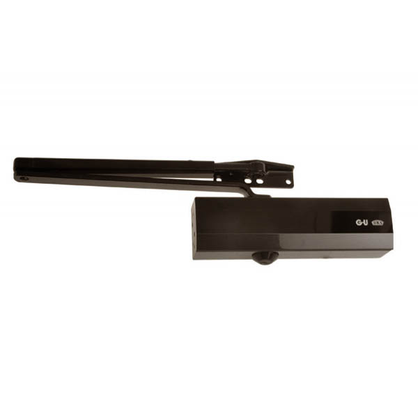 Німецький виробник G-U вже більше століття спеціалізується на випуску дверної та віконної фурнітури. Дана модель дотягувача GU ОТS 210 STD встановлюється накладним монтажем на внутрішні та зовнішні дверні полотна з максимальною вагою до 80 кг та шириною до 1100 мм. Безпосередньо на корпусі є можливість регулювати основну швидкість, швидкість захлопування та гальмо відчинення. Дана функція захищає дверне полотно від удару об стіну та виривання тяги дотягувача. Загалом завдяки таким можливостям регулювання можна добитись максимально індивідуального налаштування зачинення дверей так, як Вам потрібно. Гідравлічне масло в даній моделі високої якості. Завдяки цьому проблем при роботі дотягувача при перепаді температур не буде. Взагалі його робоча температура варіюється в діапазоні від -15°С до +40°С. В даній комплектації присутня стандартна тяга без фіксації дверного полотна у відкритому положенні. В коричневому кольорі найкраще буде доповнювати двері аналогічних темних відтінків для того, щоб максимально уникнути контрастів та не привертати зайвої уваги.
