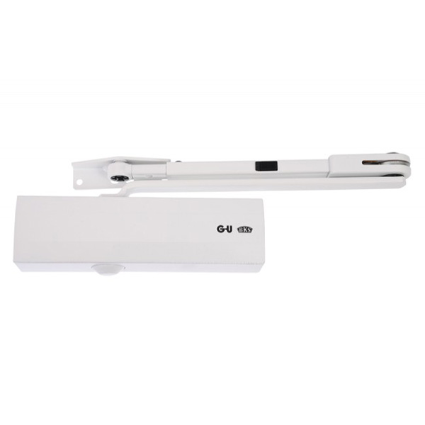 Німецький виробник G-U вже більше століття спеціалізується на випуску дверної та віконної фурнітури. Дана модель дотягувача GU ОТS 210 STD HO встановлюється накладним монтажем на внутрішні та зовнішні дверні полотна з максимальною вагою до 80 кг та шириною до 1100 мм. Безпосередньо на корпусі є можливість регулювати основну швидкість, швидкість захлопування та гальмо відчинення. Дана функція захищає дверне полотно від удару об стіну та виривання тяги дотягувача. Загалом завдяки таким можливостям регулювання можна добитись максимально індивідуального налаштування зачинення дверей так, як Вам потрібно. Гідравлічне масло в даній моделі високої якості. Завдяки цьому проблем при роботі дотягувача при перепаді температур не буде. Взагалі його робоча температура варіюється в діапазоні від -15°С до +40°С. В даній комплектації присутня стандартна тяга з фіксацією дверного полотна у відкритому положенні в межах 70°-150°. Це дає можливість залишити двері відчиненими для провітрювання чи для зручності користування у комерційних приміщеннях. В білому кольорі найкраще буде доповнювати двері аналогічних світлих відтінків для того, щоб максимально уникнути контрастів та не привертати зайвої уваги.