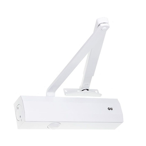 Німецький виробник G-U вже більше століття спеціалізується на випуску дверної та віконної фурнітури. Дана модель дотягувача GU ОТS 536 STD HO встановлюється накладним монтажем на внутрішні та зовнішні дверні полотна з максимальною вагою до 150 кг та шириною до 1400 мм. Безпосередньо на корпусі є можливість регулювати основну швидкість, швидкість захлопування та гальмо відчинення. Дана функція захищає дверне полотно від удару об стіну та виривання тяги дотягувача. Загалом завдяки таким можливостям регулювання можна добитись максимально індивідуального налаштування зачинення дверей так, як Вам потрібно. Гідравлічне масло в даній моделі високої якості. Завдяки цьому проблем при роботі дотягувача при перепаді температур не буде. Взагалі його робоча температура варіюється в діапазоні від -15°С до +40°С. В даній комплектації присутня стандартна тяга з фіксацією дверного полотна у відкритому положенні в межах 70°-150°. Це дає можливість залишити двері відчиненими для провітрювання чи для зручності користування у комерційних приміщеннях. В білому кольорі найкраще буде доповнювати двері аналогічних світлих відтінків для того, щоб максимально уникнути контрастів та не привертати зайвої уваги.