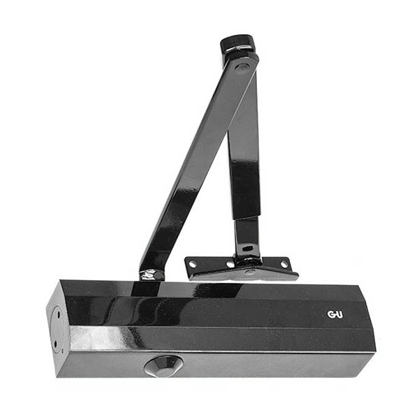 Німецький виробник G-U вже більше століття спеціалізується на випуску дверної та віконної фурнітури. Дана модель дотягувача GU ОТS 536 STD HO встановлюється накладним монтажем на внутрішні та зовнішні дверні полотна з максимальною вагою до 150 кг та шириною до 1400 мм. Безпосередньо на корпусі є можливість регулювати основну швидкість, швидкість захлопування та гальмо відчинення. Дана функція захищає дверне полотно від удару об стіну та виривання тяги дотягувача. Загалом завдяки таким можливостям регулювання можна добитись максимально індивідуального налаштування зачинення дверей так, як Вам потрібно. Гідравлічне масло в даній моделі високої якості. Завдяки цьому проблем при роботі дотягувача при перепаді температур не буде. Взагалі його робоча температура варіюється в діапазоні від -15°С до +40°С. В даній комплектації присутня стандартна тяга з фіксацією дверного полотна у відкритому положенні в межах 70°-150°. Це дає можливість залишити двері відчиненими для провітрювання чи для зручності користування у комерційних приміщеннях. В чорному кольорі найкраще буде доповнювати двері аналогічних темних відтінків для того, щоб максимально уникнути контрастів та не привертати зайвої уваги.