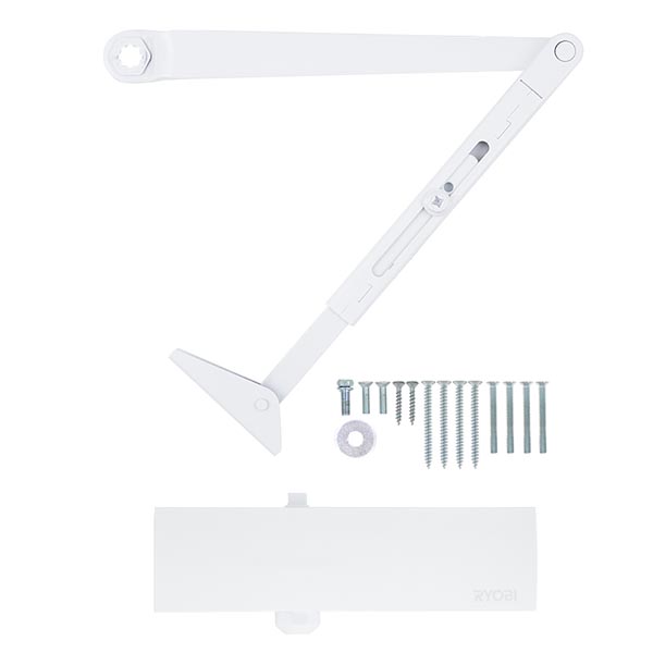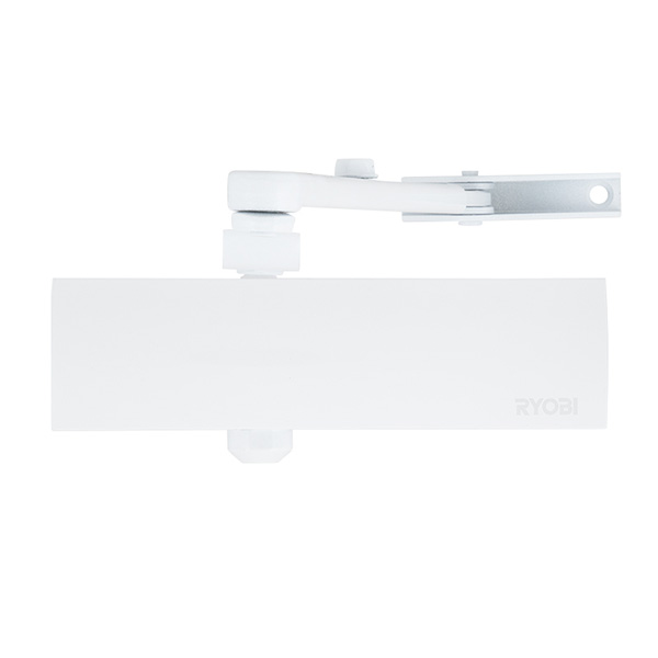 Продукція японського виробника RYOBI по праву визнана в усьому світі завдяки своїй відмінній якості. Дана модель RYOBI D-1200 STD встановлюється накладним монтажем на легкі дверні полотна масою до 80 кг та шириною до 1100 мм. Гідравлічний привід забезпечує чітку роботу дотягувача з кутом відкривання до 180°. Безпосередньо на корпусі є можливість регулювати основну швидкість та швидкість захлопування. Завдяки цьому можна досягнути індивідуального налаштування зачинення дверей так як Вам потрібно. Особливістю дотягувачів RYOBI є спеціальне термоконстантне масло. Воно забезпечує стабільну роботу навіть при великому перепаді температур. Взагалі робоча температура варіюється в діапазоні від -20 до +45°С. RYOBI D-1200 STD може бути встановлений на ліво і правосторонні двері з можливістю відкривання як всередину так і назовні. В даній комплектації присутня стандартная тяга без фіксації дверей у відчиненому стані. За потреби можливо окремо замовити тягу з фіксацією. В білому кольорі найкраще буде доповнювати двері подібних світлих відтінків для того, щоб максимально уникнути контрастів та не привертати зайвої уваги.