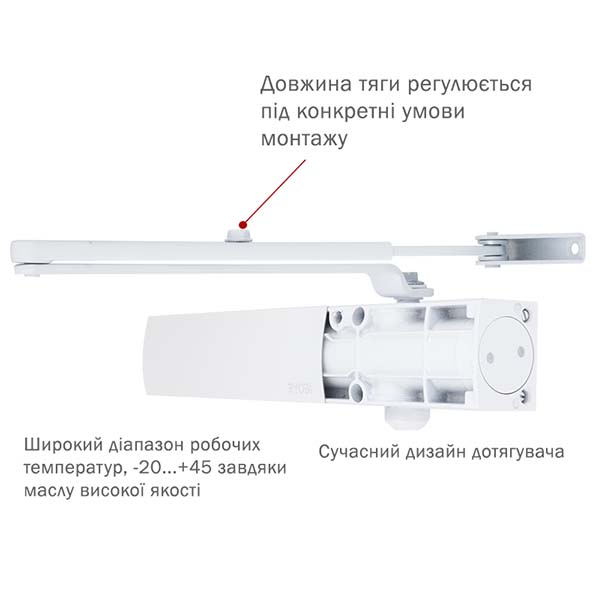 Також слід розуміти які додаткові функції Вам потрібні. Окрім стандартного дотягування дверного полотна, більш дорожчі моделі мають функцію фіксації у відкритому положенні. Це створює додаткову зручність, адже можна зафіксувати двері у відчиненому стані. Можливі нюанси і стосовно місця встановлення. До прикладу, якщо заважає стіна, то потрібно ставити монтажну пластину або дотягувач із ковзною тягою, він виглядає набагато естетичніше, але ставлять його переважно на легкі двері.