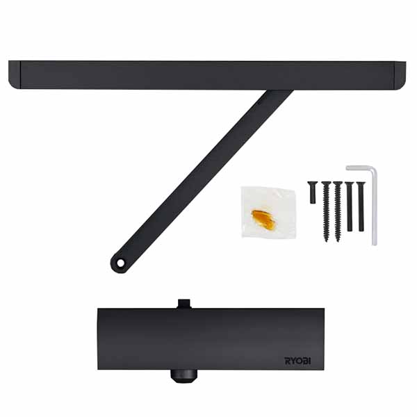 Продукція японського виробника RYOBI по праву визнана в усьому світі завдяки своїй відмінній якості. Дана модель RYOBI D-1200T SLD HO встановлюється накладним монтажем на дверні полотна масою до 40 кг та шириною до 850 мм. Гідравлічний привід забезпечує чітку роботу дотягувача з кутом відкривання до 130°. Безпосередньо на корпусі є можливість регулювати основну швидкість в межах 130°-10° та швидкість захлопування - 10°-0°. Завдяки цьому можна досягнути індивідуального налаштування зачинення дверей так як Вам потрібно. Особливістю дотягувачів RYOBI є спеціальне термоконстантне масло. Воно забезпечує стабільну роботу навіть при великому перепаді температур. Взагалі робоча температура варіюється в діапазоні від -20 до +45°С. D-1200T SLD HO може бути встановлений на ліво і правосторонні двері з можливістю відкривання як всередину так і назовні. В даній комплектації присутня ковзна тяга з фіксацією дверного полотна у відкритому положенні. Це дає можливість залишити двері відчиненими для провітрювання чи для зручності користування у комерційних приміщеннях. В кольорі “сірий антрацит” найкраще буде доповнювати двері подібних темних відтінків для того, щоб максимально уникнути контрастів та не привертати зайвої уваги.