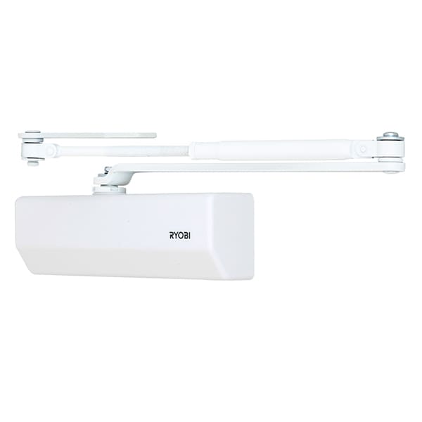 Продукція японського виробника RYOBI по праву визнана в усьому світі завдяки своїй відмінній якості. Дана модель RYOBI D-2055V BC UNIV встановлюється накладним монтажем на дверні полотна масою до 100 кг та шириною до 1250 мм. Є можливість встановлення за допомогою кронштейна паралельного положення тяги відносно дверей задля збереження дизайну приміщення чи використання дотягувача в умовах обмеженого простору. Тоді максимальна вага і ширина полотна повинні бути меншими. Гідравлічний привід забезпечує чітку роботу дотягувача з кутом відкривання до 180°. Безпосередньо на корпусі є можливість регулювати основну швидкість в межах 180°-10°, швидкість захлопування - 10°-0° та гальмо відчинення - 75°-180°. Дана функція захищає дверне полотно від удару об стіну та виривання тяги дотягувача. Завдяки цьому можна досягнути індивідуального налаштування зачинення дверей так як Вам потрібно. Особливістю дотягувачів RYOBI є спеціальне термоконстантне масло. Воно забезпечує стабільну роботу навіть при великому перепаді температур. Взагалі робоча температура варіюється в діапазоні від -20 до +45°С. RYOBI D-2055V BC UNIV може бути встановлений на ліво і правосторонні двері з можливістю відкривання як всередину так і назовні. В даній комплектації присутня стандартна тяга без фіксації дверного полотна у відкритому положенні. Проте даний дотягувач сертифікований для використання з протипожежними дверима. В білому кольорі найкраще буде доповнювати двері подібних світлих відтінків для того, щоб максимально уникнути контрастів та не привертати зайвої уваги.