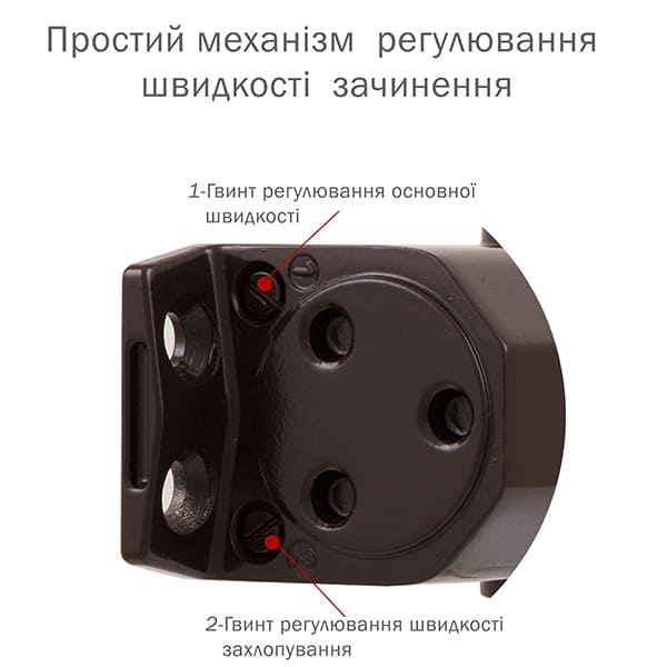 Продукція японського виробника RYOBI по праву визнана в усьому світі завдяки своїй відмінній якості. Дана модель RYOBI D-2055V BC UNIV встановлюється накладним монтажем на дверні полотна масою до 100 кг та шириною до 1250 мм. Є можливість встановлення за допомогою кронштейна паралельного положення тяги відносно дверей задля збереження дизайну приміщення чи використання дотягувача в умовах обмеженого простору. Тоді максимальна вага і ширина полотна повинні бути меншими. Гідравлічний привід забезпечує чітку роботу дотягувача з кутом відкривання до 180°. Безпосередньо на корпусі є можливість регулювати основну швидкість в межах 180°-10°, швидкість захлопування - 10°-0° та гальмо відчинення - 75°-180°. Дана функція захищає дверне полотно від удару об стіну та виривання тяги дотягувача. Завдяки цьому можна досягнути індивідуального налаштування зачинення дверей так як Вам потрібно. Особливістю дотягувачів RYOBI є спеціальне термоконстантне масло. Воно забезпечує стабільну роботу навіть при великому перепаді температур. Взагалі робоча температура варіюється в діапазоні від -20 до +45°С. RYOBI D-2055V BC UNIV може бути встановлений на ліво і правосторонні двері з можливістю відкривання як всередину так і назовні. В даній комплектації присутня стандартна тяга без фіксації дверного полотна у відкритому положенні. Проте даний дотягувач сертифікований для використання з протипожежними дверима. В коричневому кольорі найкраще буде доповнювати двері подібних темних відтінків для того, щоб максимально уникнути контрастів та не привертати зайвої уваги.