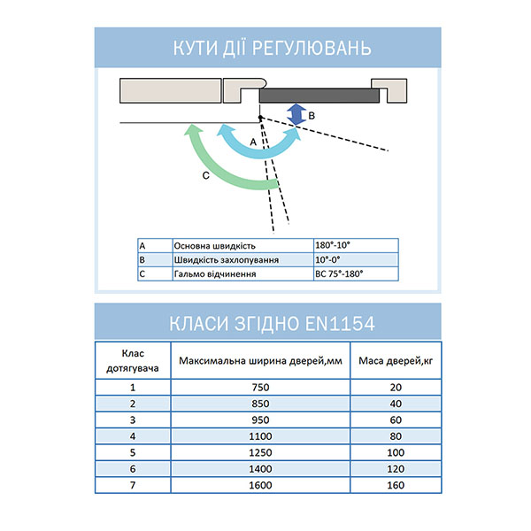 | Тип тяги дотягувача | стандартна з фіксацією | |