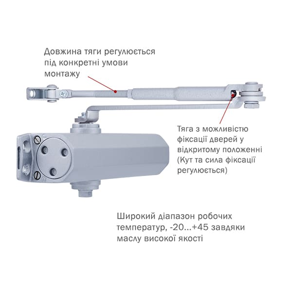 | Тип тяги дотягувача | стандартна з фіксацією | |